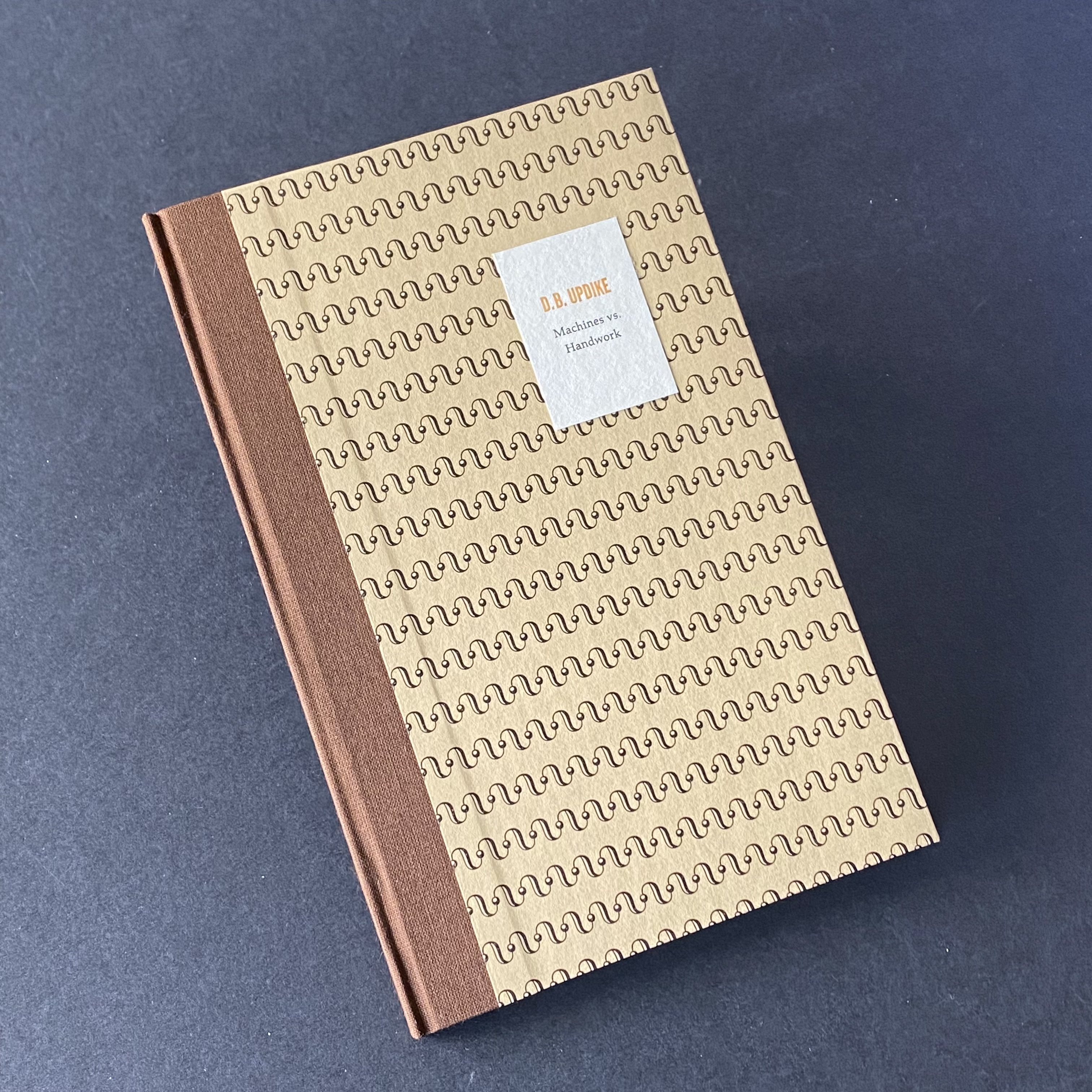 ![]() [ Large Image ] | Calmly, Intelligently, Persistently: Daniel Berkeley Updike on the Press in a Time of Crisis D.B. Updike 2021 / Essay / $40.00 Fine / 16 pp Daniel Berkeley Updike, 1860–1941, founder of Boston’s famed Merrymount Press, a specialized commercial printshop where common work was done uncommonly well. He wrote this essay at a time when destruction and disorder dominated the news and civilization seemed to be falling apart. Yet Updike’s tone is one of stubborn resolve and optimism. Originally published in 1941 under the title “A Last Word.” Specifications: Typeset in 16 point Monotype Centaur and printed letterpress in black and blue on Saint-Gilles Gaspereau Text handmade paper. Folded and trimmed to 6.25 × 9.75 inches, making 16 pages. Bound in orange card stock with a blue Zerkell Ingres mouldmade paper wrapper printed in black, white, blue and orange. Limited edition of 100 numbered copies. To purchase this title: Add it to your cart | Other Books by this Author | Machines vs. Handwork D.B. Updike 2022 / Essay / $50.00 CAN Fine / 16 pp |
